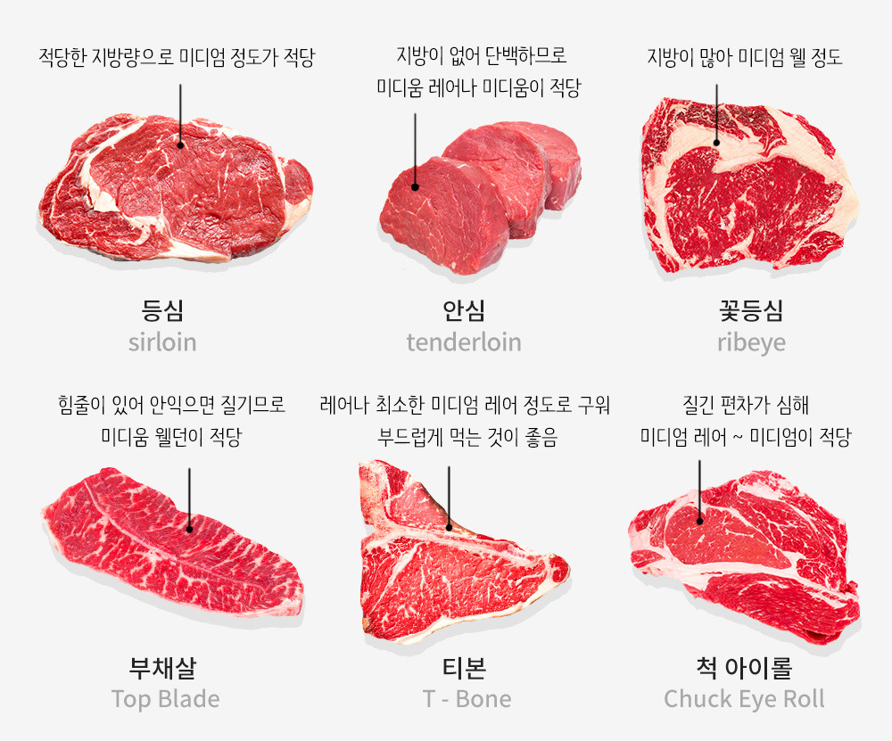 각 부위별 특징 및 굽기 방법