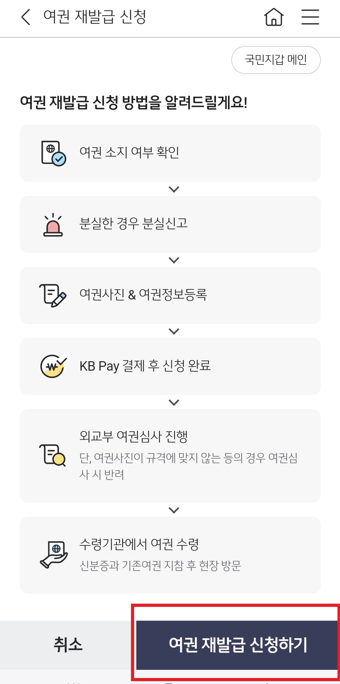 KB 스타뱅킹으로 여권 재발급 신청하기