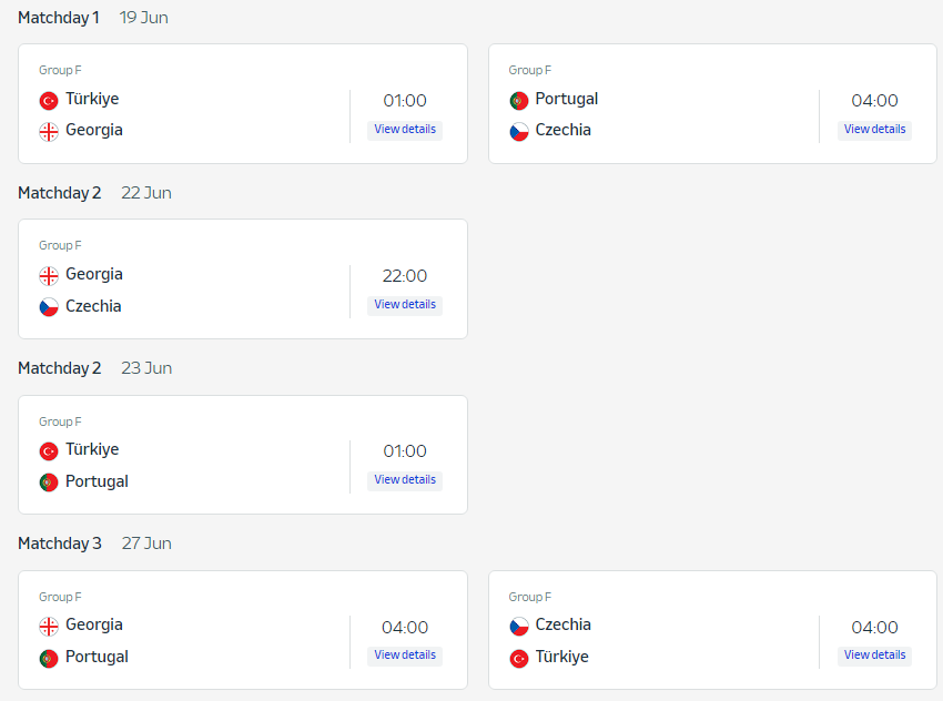 1. 유로 2024 조별 리그 일정