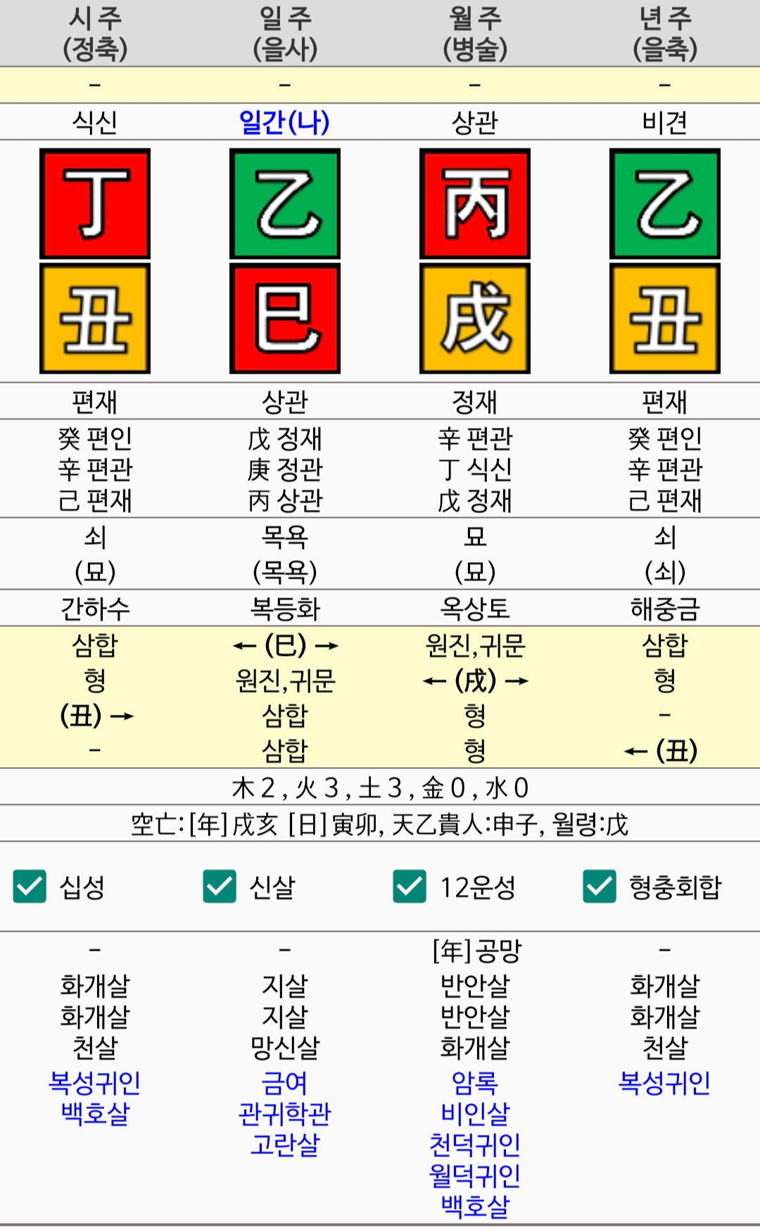 만세력 어플을 통하여 본인의 생년 월일 및 태어난 시간을 입력하면 사주가 자세하게 분석이 됩니다.
