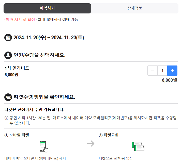 10월 31일(목)에 1차 얼리버드 예매가 종료