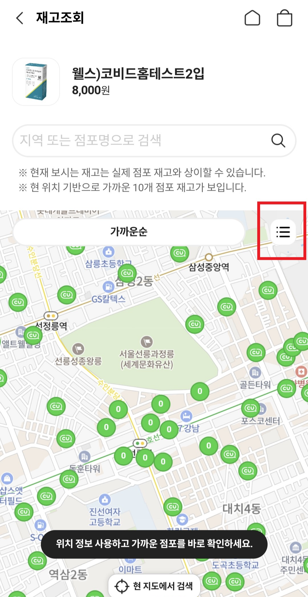 4. 지도 오른쪽 상단에 목록 기호를 클릭한다.